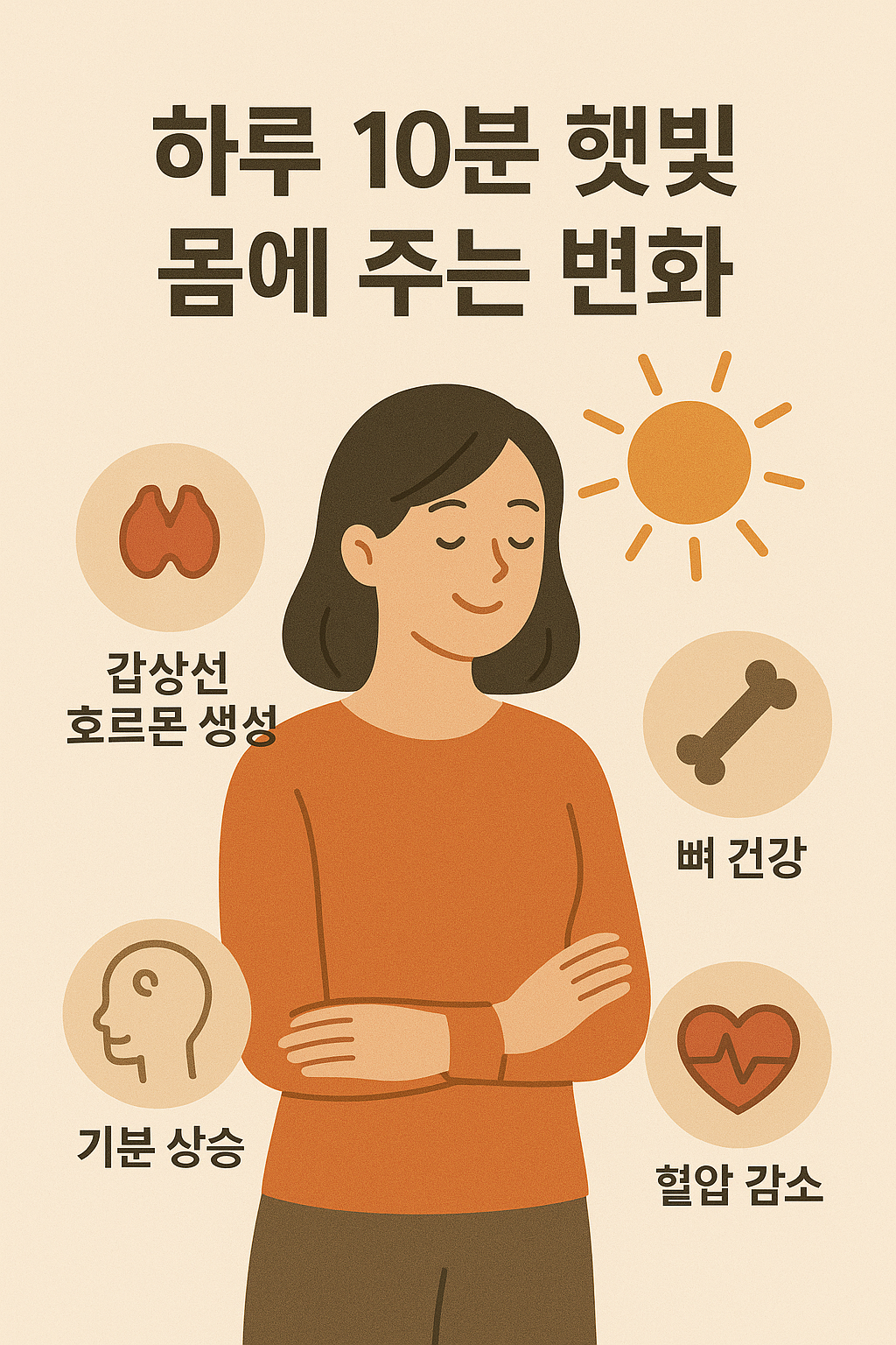 햇빛은 양보다 ‘적정량’이 중요합니다. 하루 10분만 꾸준히 쬐어도 호르몬·면역·피부 건강에 큰 차이를 만듭니다.